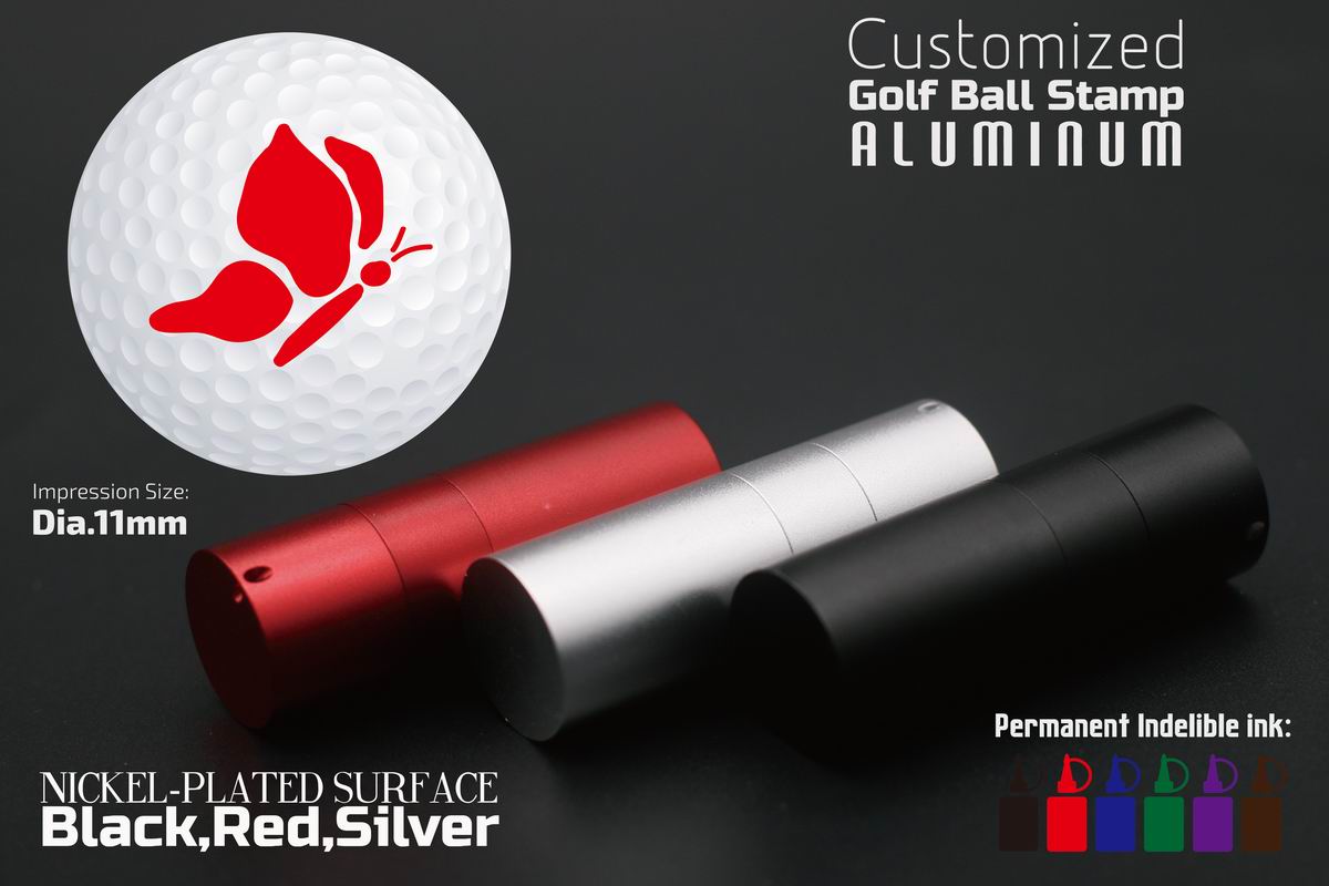 Evergreen pre inked golf ball stamps, can create high quality impressions on the Golf balls, The size of the imprints is around Dia. 11mm . The Golf Ball Stamp uses permanent ink that makes a smudge free imprint that lasts forever on most ball surfaces. and no need a separate ink pad. Now it is easy to mark thousands of personalized golf balls with the Golf Ball Stamp. The flexible stamping surface will conform to any dimpled ball surface and create perfect imprints . You will never hit the wrong ball again by using our golf ball stamps .